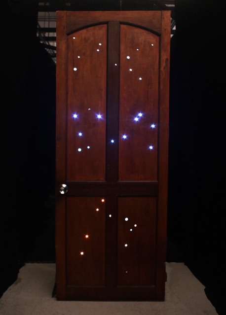 Combine two subjects above, the door with holes that lets lighting rays come out from monitors are screening Karaoke videos trying offer the thinking: we are always an outsider to any one else’s story. What we are seeing, thinking or assuming may not the whole story, there’s a lot more behind.